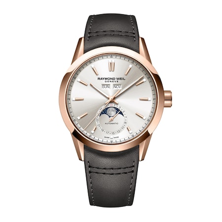 Perfect balance between technical precision and refinement, RAYMOND WEIL introduces its first Complete Calendar in the freelancer collection. With its assertive design, innovative features and cutting-edge materials, this sophisticated new creation elevates the noblest traditions of watchmaking, captivating both watch enthusiasts and admirers of contemporary elegance. The mechanism displays date, month, day and moon phases within a redesigned 40 mm case featuring integrated correctors. A new milestone for the freelancer collection, combining traditional craftsmanship, an iconic complication and contemporary design.
