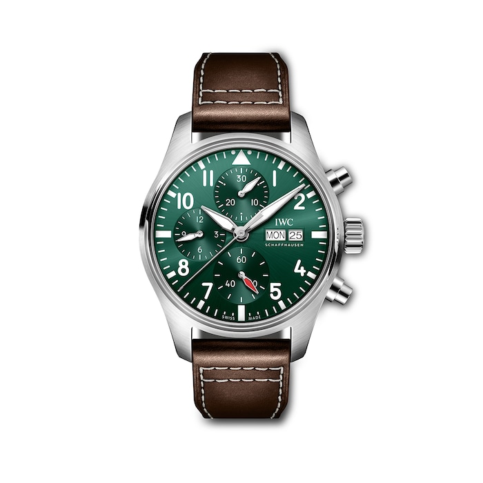 Styled to resemble a cockpit instrument, the rich green dial is home to a day and date display, advanced chronograph functions providing precision to the nearest hour, minute, and second, and a tachymeter scale.